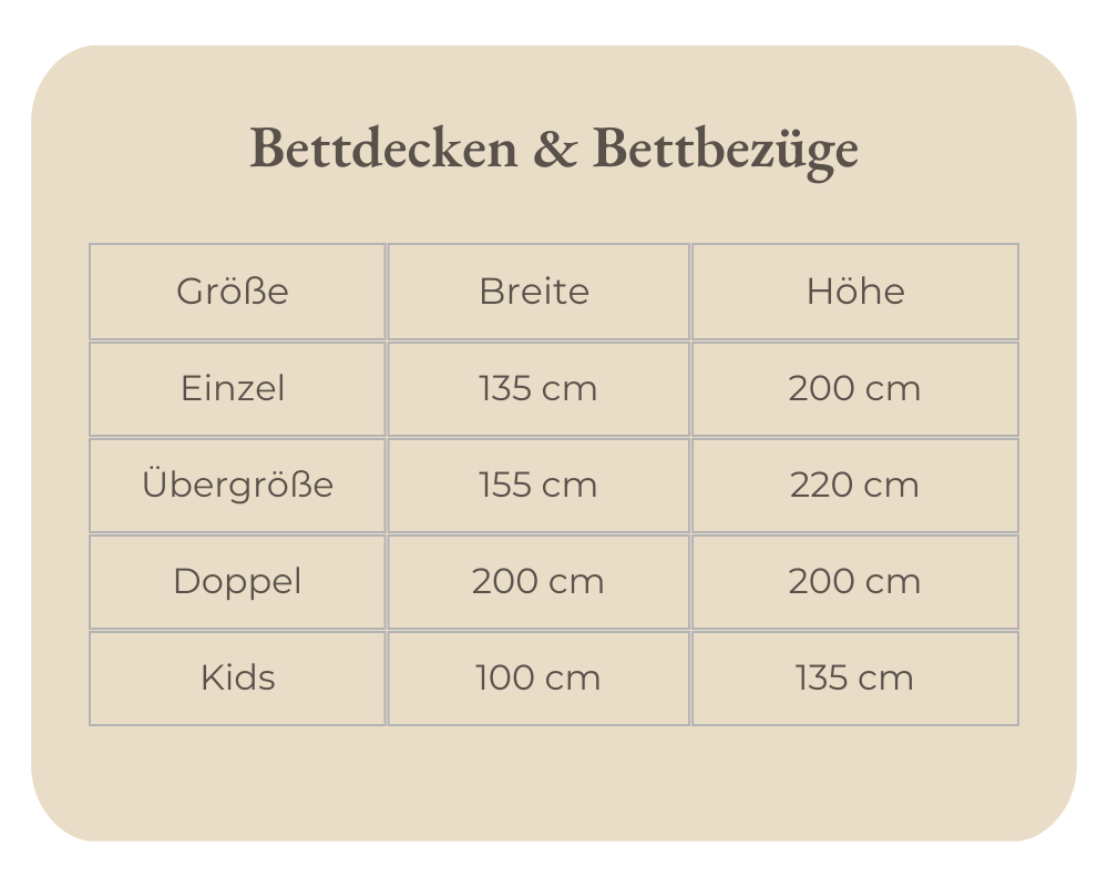 Wir empfehlen eine Maschinenwäsche bei 30°C - 40°C im Schonwaschgang und Lufttrocknen. Mit jeder Wäsche wird das Material sogar noch weicher. Detaillierte Pflegehinweise finden Sie hier: Pflegehinweise ansehen