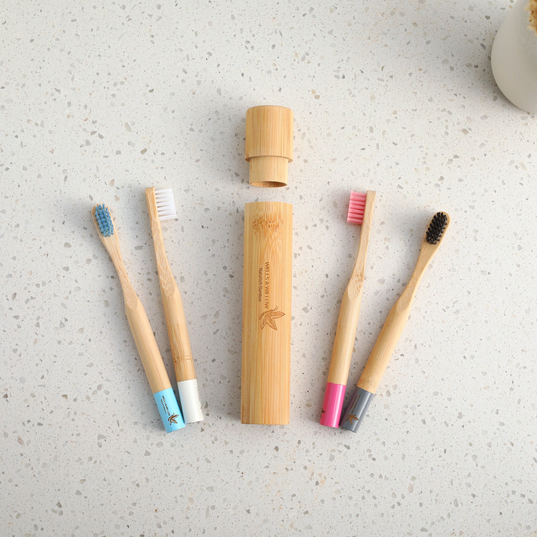 Praktisch für unterwegs: Unsere Zahnbürste wird mit einem passenden Reiseetui aus Bambus geliefert – perfekt für Reisen oder für die hygienische Aufbewahrung zu Hause.