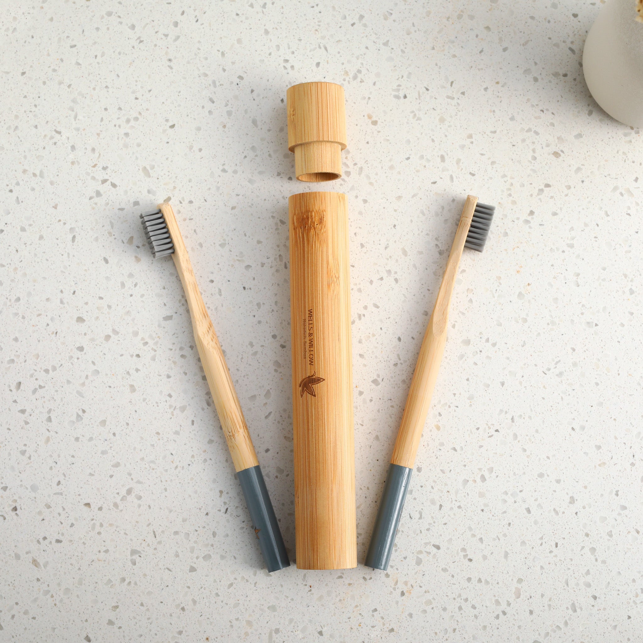 Bambus Zahnbürsten - Mittel | inkl. Reiseetui Kohlegrau